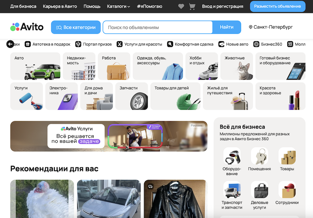 Авито добавили на главную страницу новый формат рекламы — баннер, который видят все пользователи сразу при открытии сайта или приложения