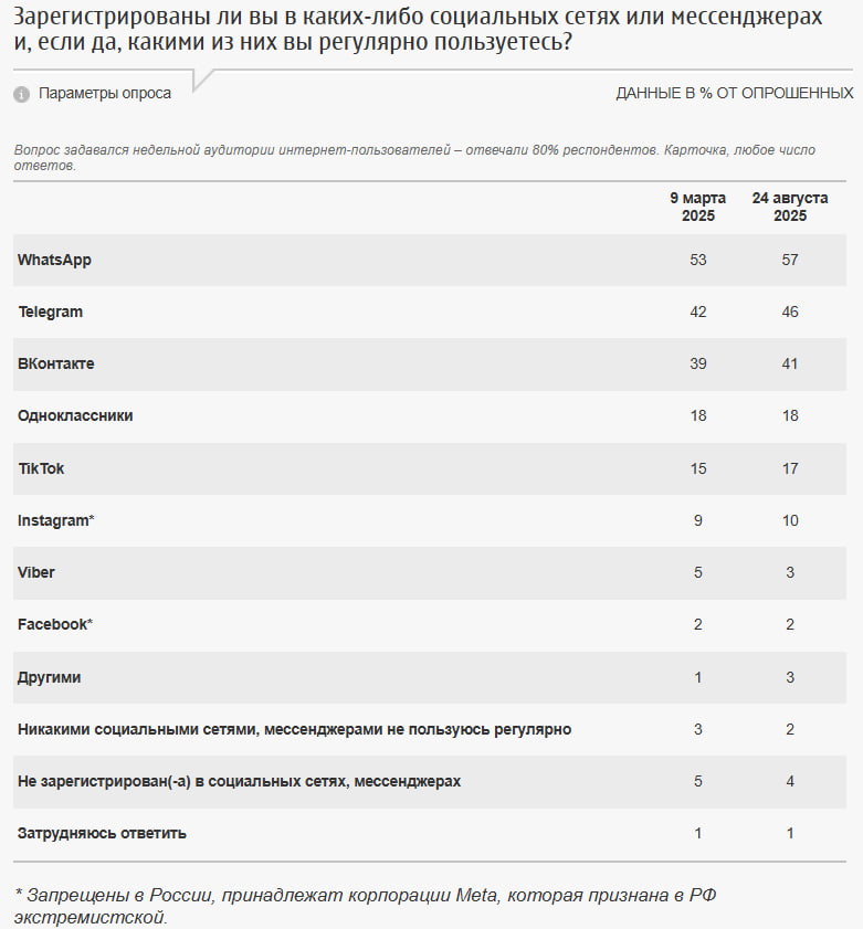 Фонд «Общественное мнение» опубликовал исследование о том, какими соцсетями и мессенджерами пользуются россияне и как они воспринимают блокировку звонков.