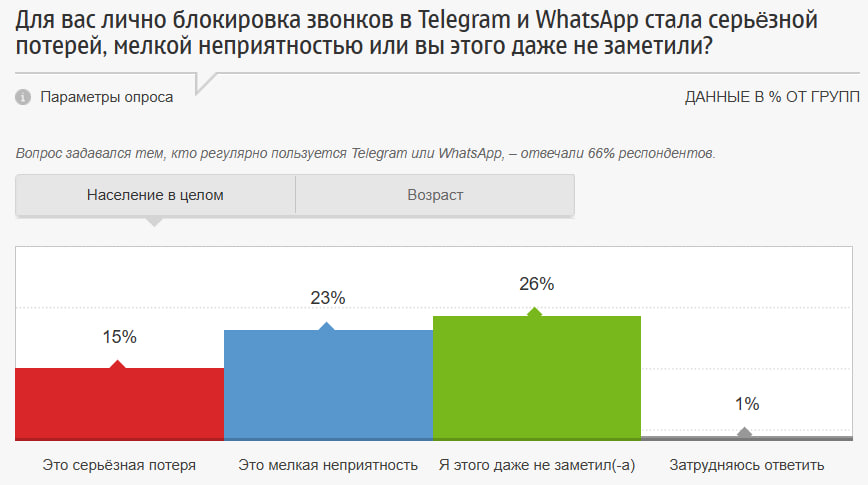 Также ФОМ узнал отношение россиян к блокировке звонков в Telegram и WhatsApp: