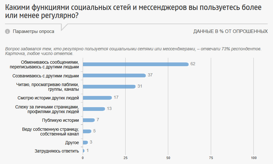 63% заходят в соцсети и мессенджеры каждый день. Ещё 7% — несколько раз в неделю